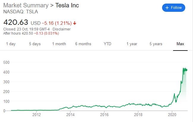 Let’s say you want to jump on the bandwagon and buy yourself some Tesla stock.
