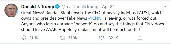 Donald Trump took an instant swipe at him on Twitter. Clearly, no love lost between CNN and the White House these days.